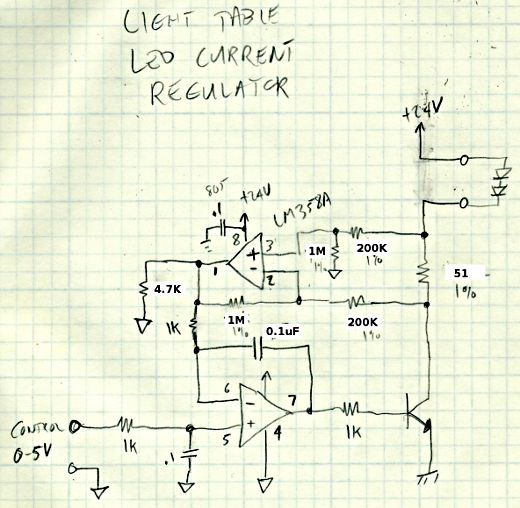 and regulates a 0 to 20 mA output current to a string of 5 LEDs. I wanted to make